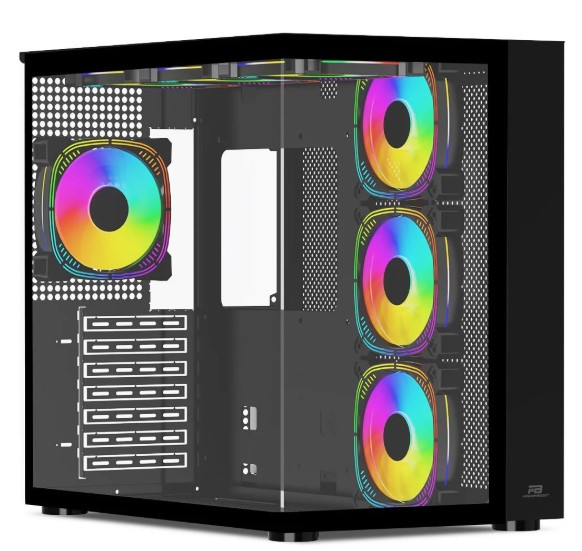 - KASA POWERBOOST PB-SS02B SEA VİEW USB 3.0, ATX 7 X ARGB FANLI, SİYAH KASA (PSU YOK)