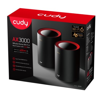 - MENZİL GENİŞLETİCİ CUDY M3000 2-PACK AX3000MBPS 2.4GHZ/5GHZ AP/RE/WISP 2.5GE MU-MIMO KABLOSUZ 2'Lİ MESH Wİ-Fİ 6 SİSTEMİ